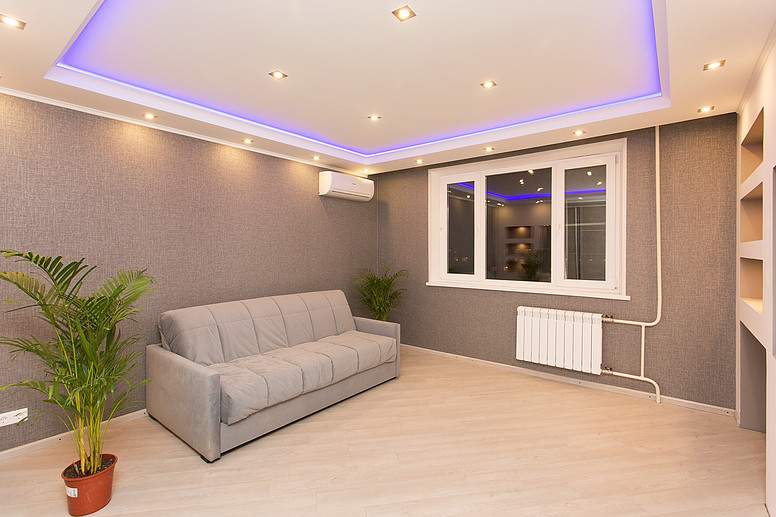 Для цього використовують глянсові чи кольорові натяжні полотна. Глянцева поверхня відмінно відбиває світло. Кімната, наповнена світлом, завжди здається більш просторою.