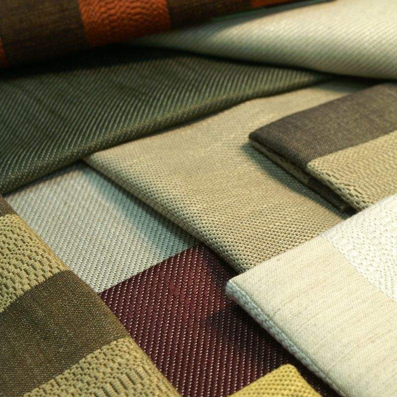 2. Рогожка — щільна тканина з особливим текстурованим плетінням. На піку однотонні матеріали бежевих, коричневих, зелених і світлих тонів.